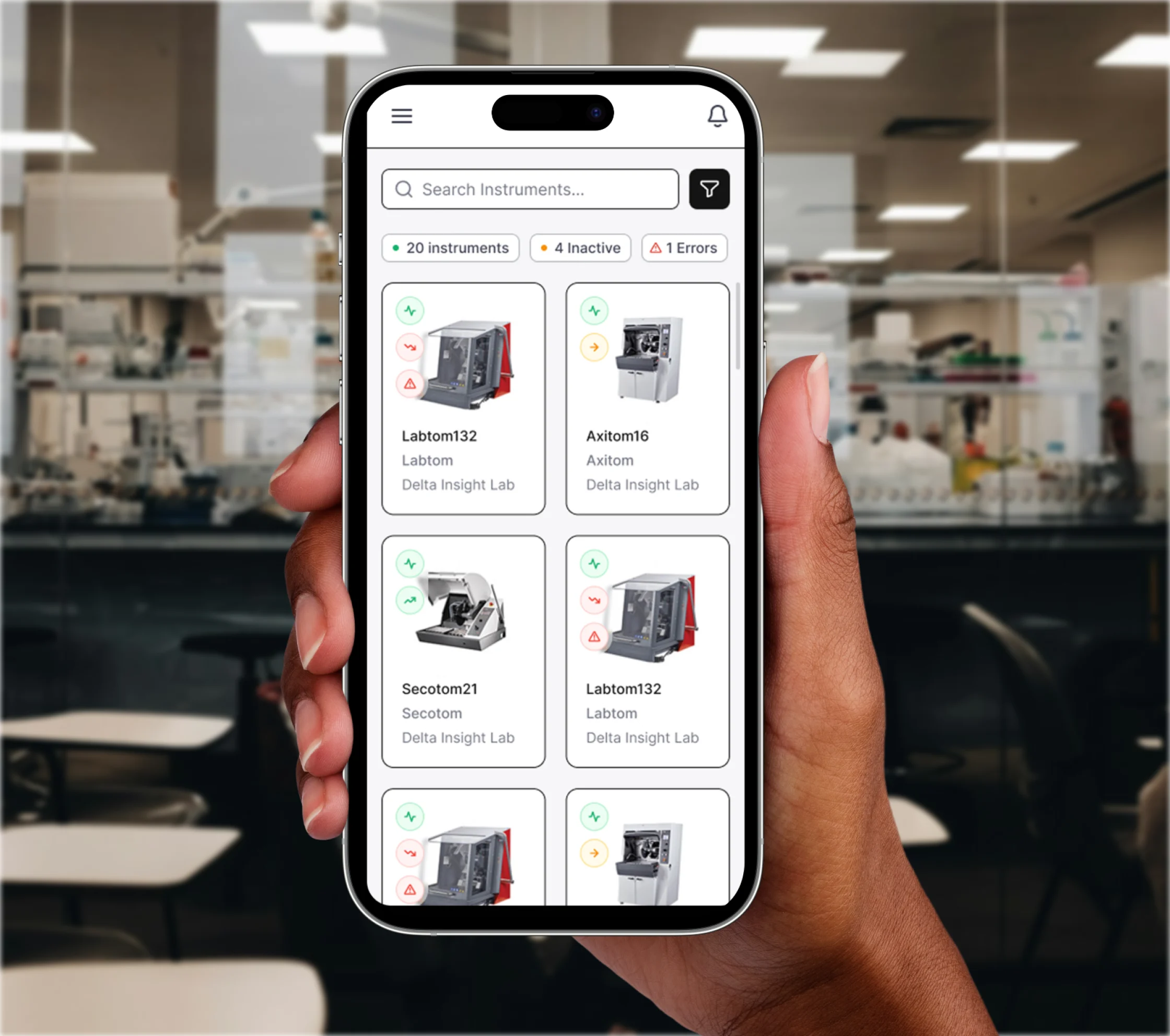 Our platform supports a wide range of laboratory instruments and connected assets — from analyzers and testing devices to calibration and environmental monitoring equipment — all accessible from a single unified dashboard.